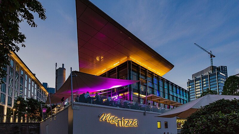 Bei einer entspannten Atmosphäre und einem wunderbarem Blick auf die Skyline und den Main können Sie den ersten Kongresstag Revue passieren lassen.